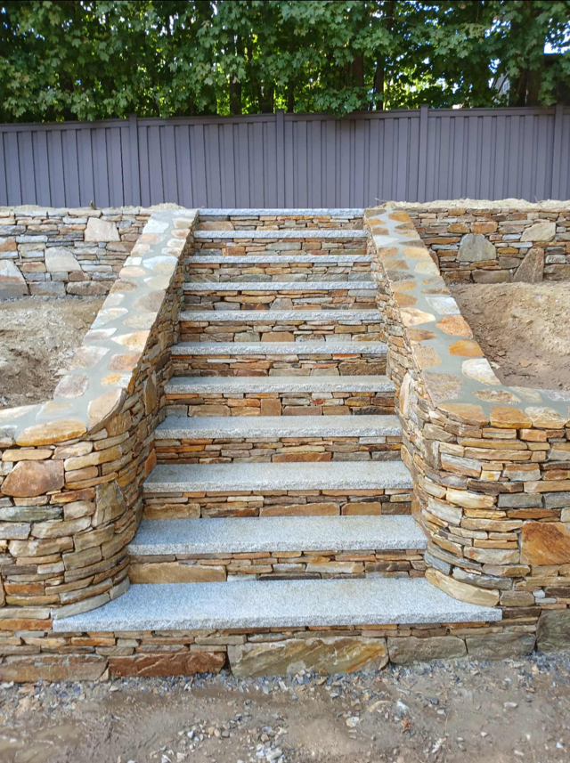 All of our steps are made from the finest stone materials. You can chose from brick, bluestone, granite or other types of natural or synthetic stone. Our stairs are made to look great, last longer, and meet building codes. Contact us now and let us create your one of a kind work of art.